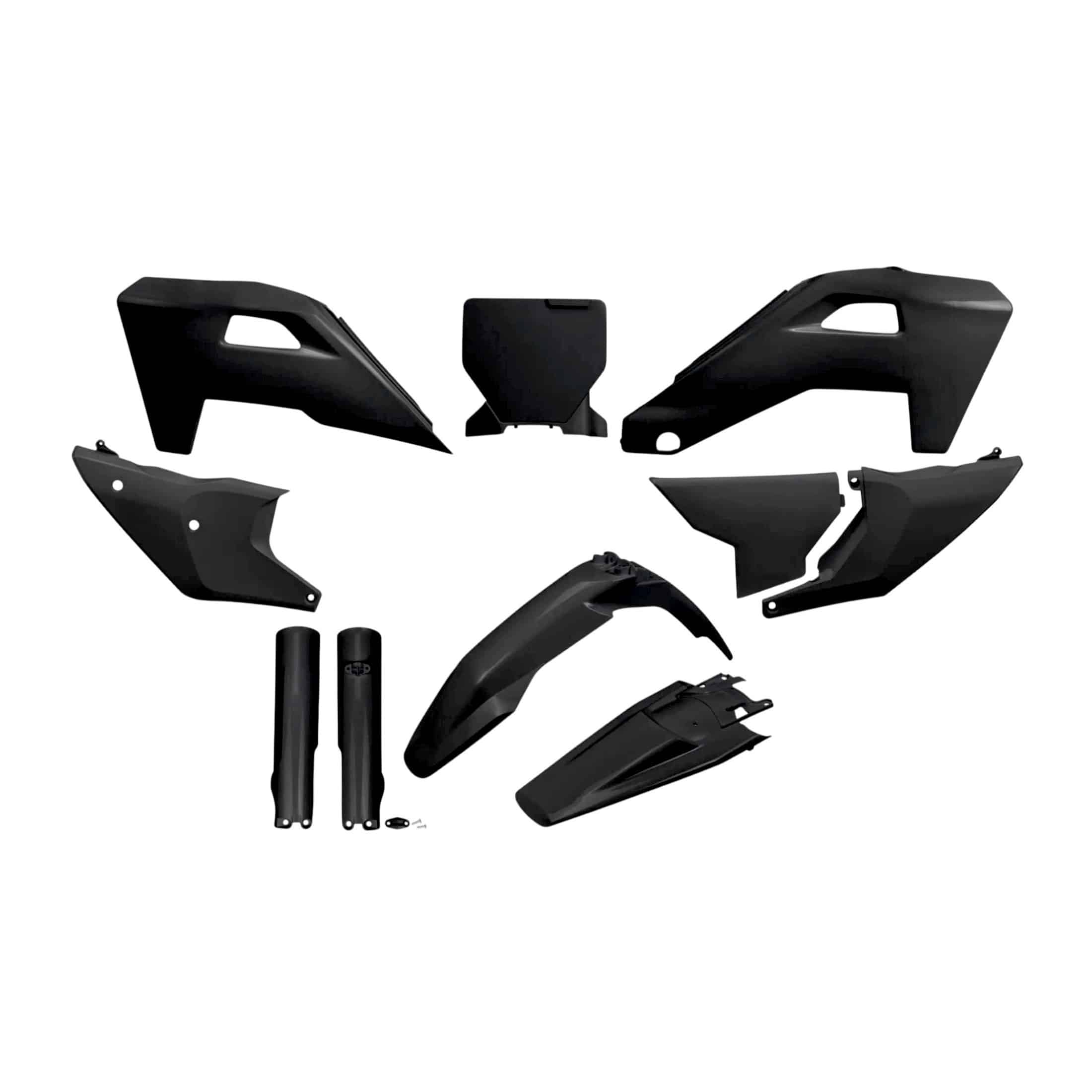 Kompletná sada plastov obsahuje: predný blatník, zadný blatník, prednú tabuľku, kryty chladičov, zadné tabuľky + airbox a kryty tlmičov.